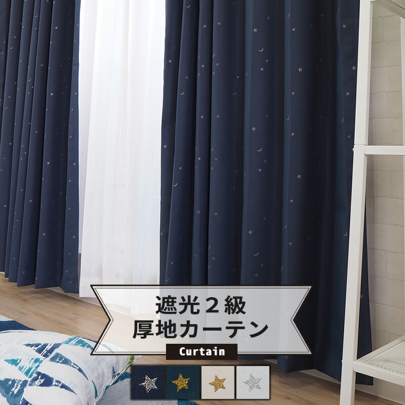 《即日出荷》 遮光2級カーテン /●星と月[厚地カーテン]/【AH556】 幅100×丈105cm[2枚組] 幅100×丈135cm[2枚組] 幅150cm×丈178/200cm[1枚] 幅150cm×丈200/200cm[1枚]から選べます。[遮光 カーテン 2級 星 星柄 月 月柄 キッズ かわいい おしゃれ 日本製 幅150] CSZ