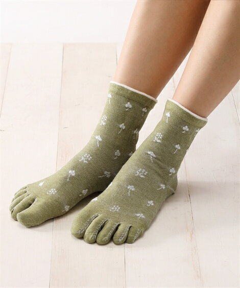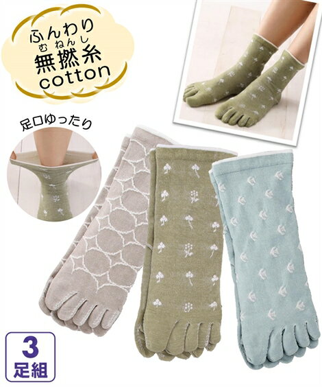 靴下 レディース ふんわり 無撚糸 5本指 クルーソックス 3足組 22.0〜25.0cm ニッセン