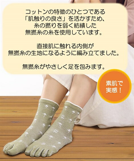 婦人用【綿97%】スラブ糸使用・五本指ゴムなしソックス【日本製】