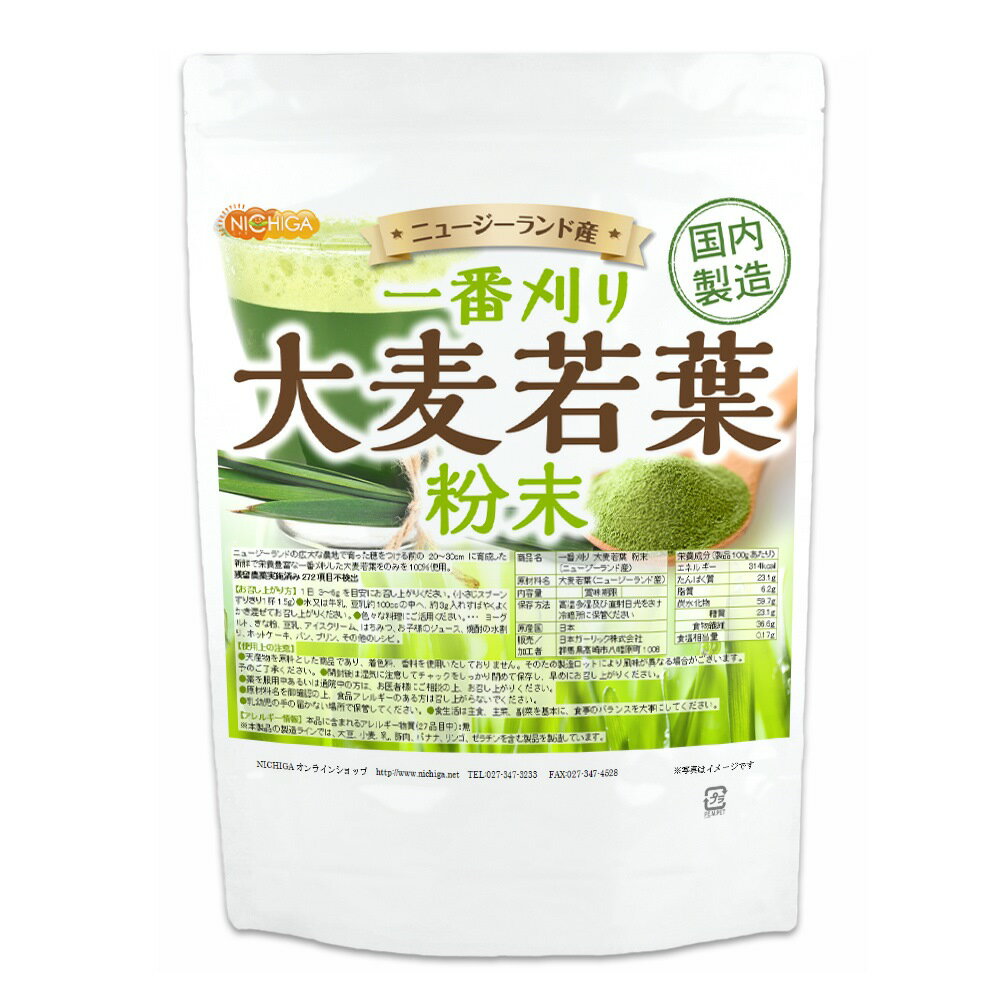 一番刈り 大麦若葉 粉末(ニュージーランド産) 500g 【メール便選択で送料無料】 無着色・無添加 [03][06] NICHIGA(ニチガ)