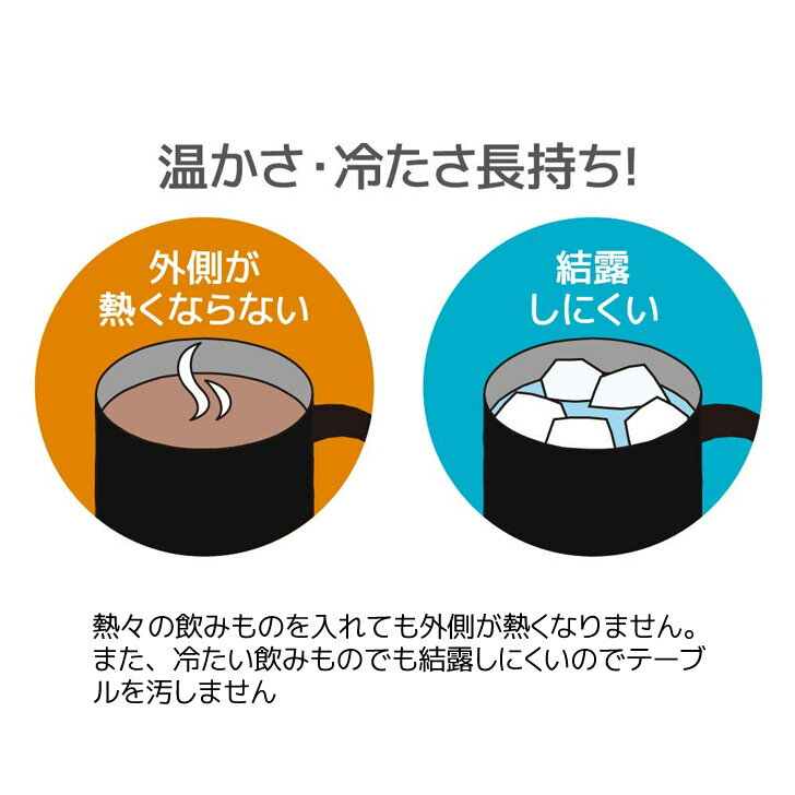 ●氷を入れても結露しにくいのでテーブルも汚れず、温かい飲み物を入れても外側が熱くなりません。